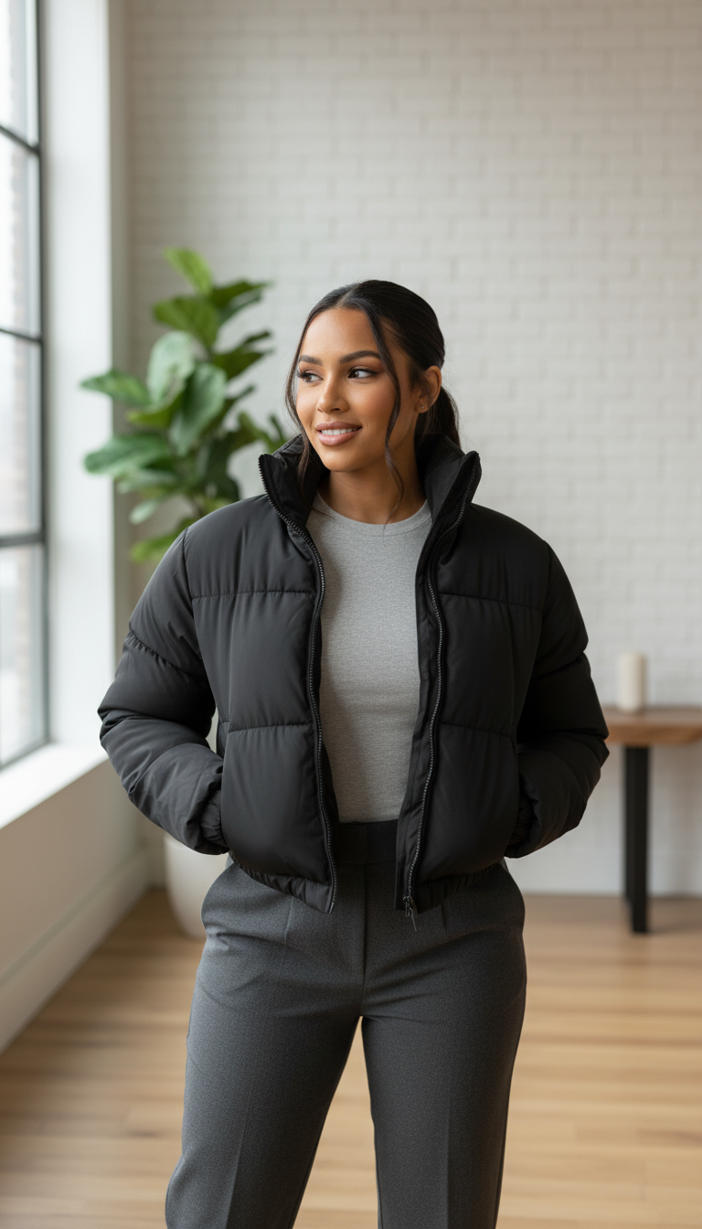 We obsessed over every detail to create the perfect cropped silhouette. The fit is intentionally designed to sit at the high-waist, elongating your legs and enhancing your shape. Say goodbye to bulky, shapeless puffers and hello to confident, effortless style.